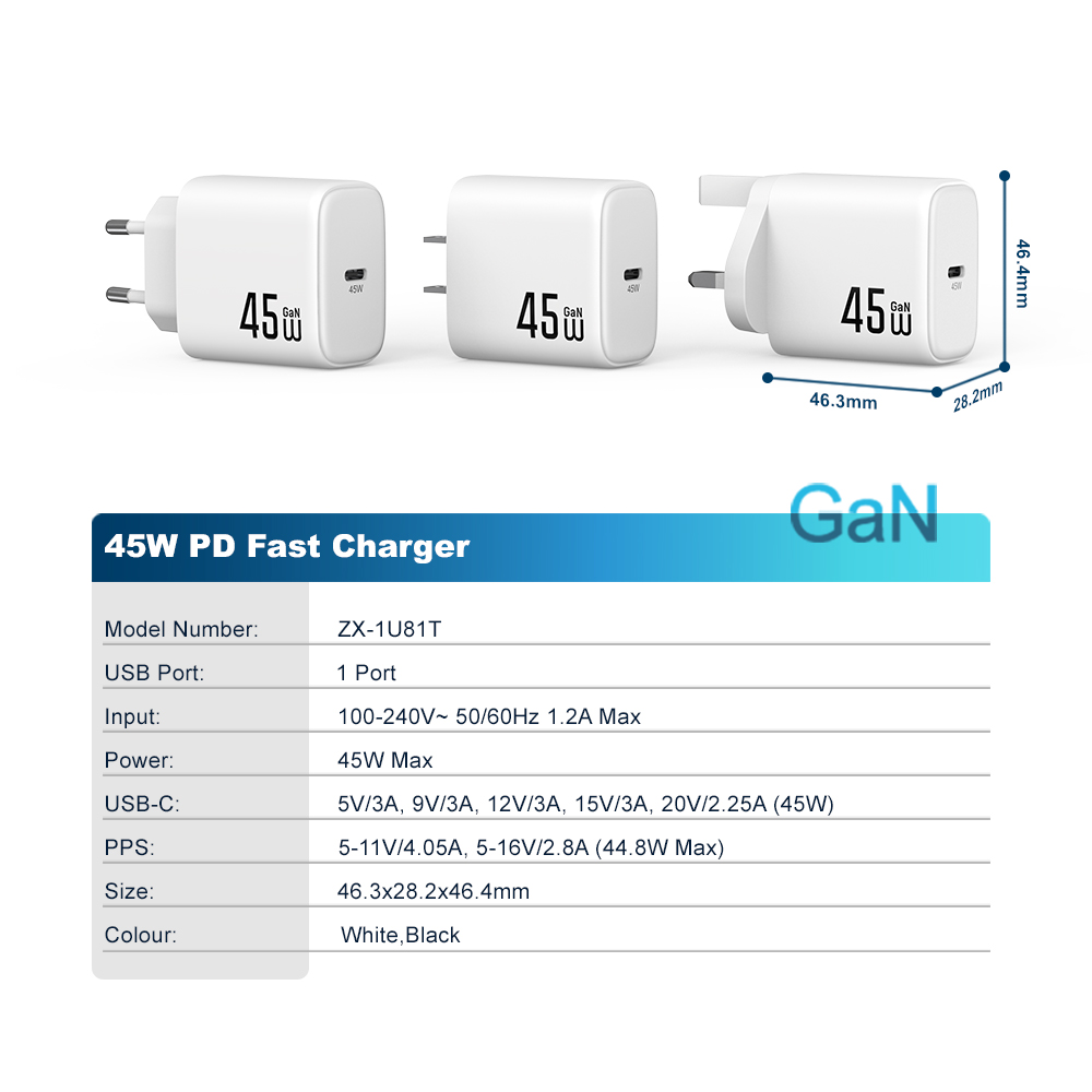 Fast Charger 45W USB C Mobile Phone PD 45w Output Current Electric Adapters Gan Charger 45w Original | ZX-1U81T