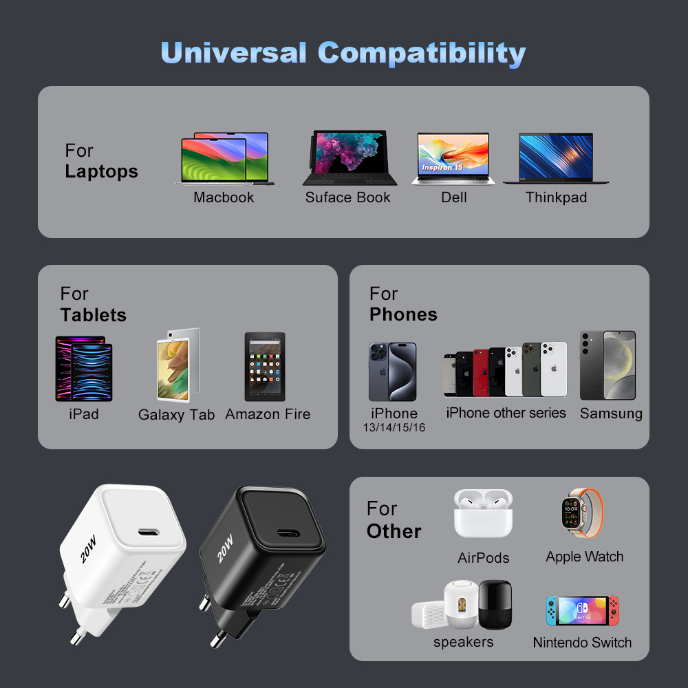 20W PD Fast Charging – Supports iPhone, Samsung, Huawei, Xiaomi, and more.