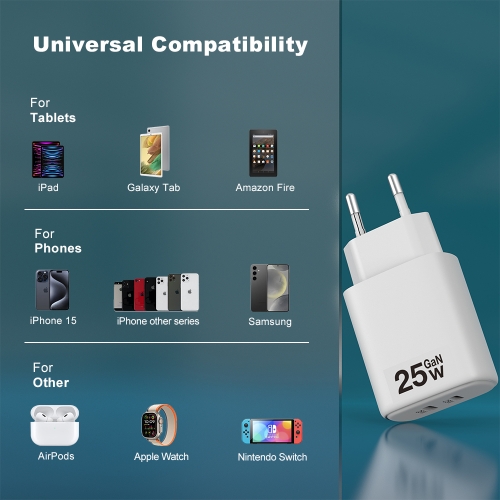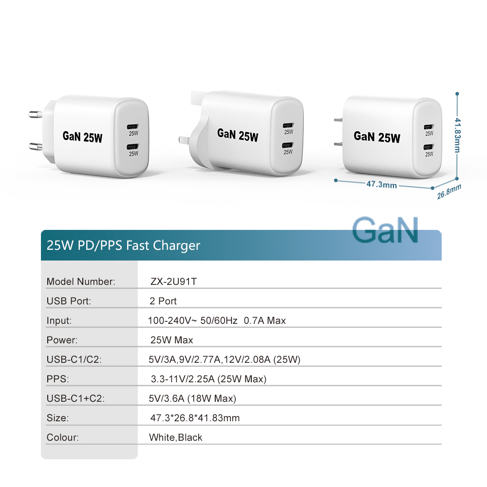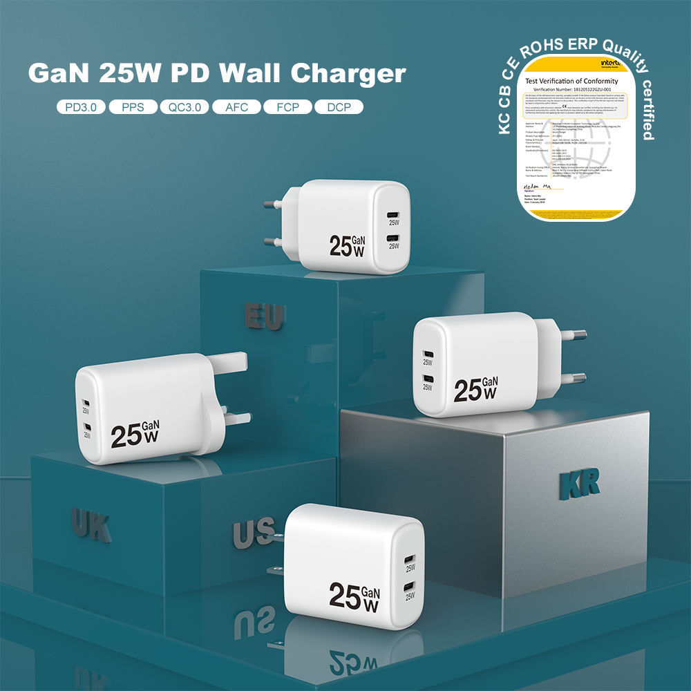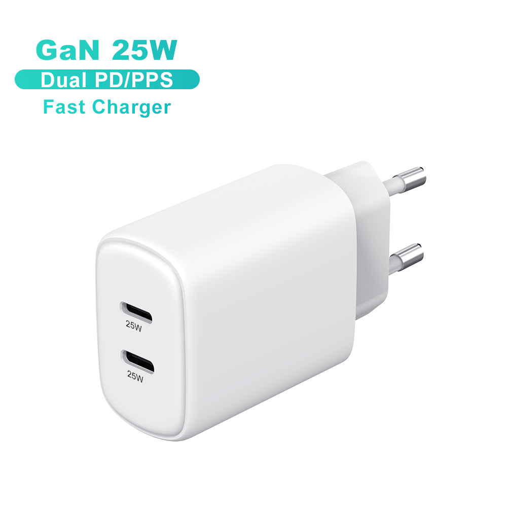 Mobile Phone chargers 25w wall cell phone charger smartphone kc PD 25w dual ports fast charger usb c